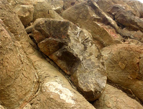 Fliesst die Basaltlava jedoch ins Meer oder gibt es einen untermeerischen Vulkanausbruch, so bildet sich keine Säulen, sondern weiche, kissenartige Formen, die mit dem Begriff Kissenlava (englisch : pillow lava) treffend bezeichnet werden. Durch tektonische Hebung finden wir solche Kissenlaven gelegentlich auch auf dem Festland, zum Beispiel in Zypern oder im Sultanat Oman.