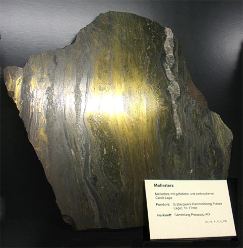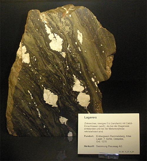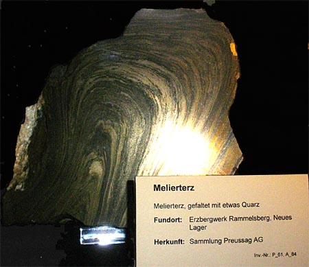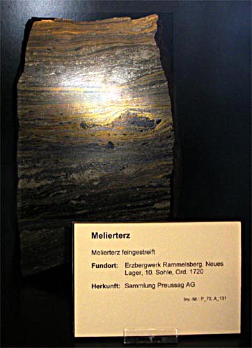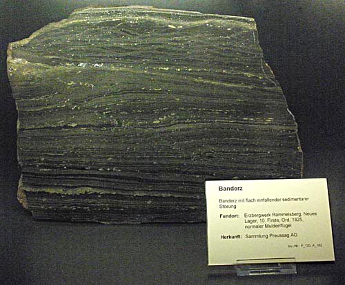 Banderz besteht aus Erzlagen in Schiefer und war das ärmste der Erze im Rammelsberg mit einem Metallgehalt von 0,6 % Kupfer. 8 % Zink und 4 % Blei. Stufenhöhe : 30 cm