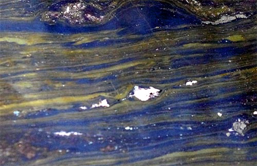 Detailausschnitt mit laminaren Erzstrukturen und wenig weissen Baryt