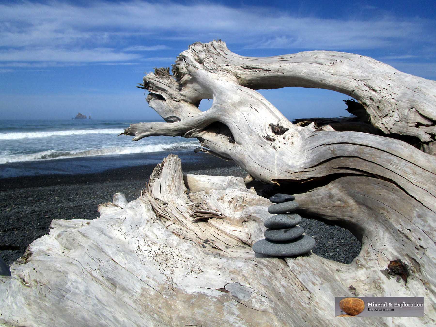 Treibholz am Mora Beach, Nordwestküste Washington, USA