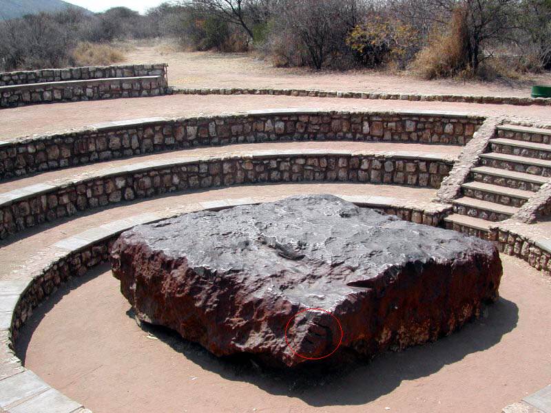 Here you see some odd marks (red circle) on the NW corner of the Hoba,