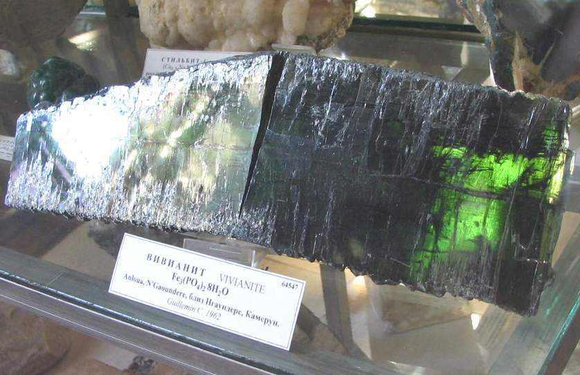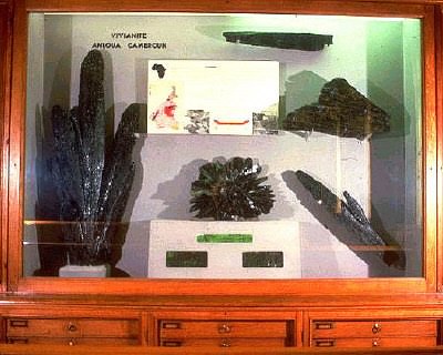 Specimen of Anloua vivianite on display in the Photo : MINES ParisTech, Paris