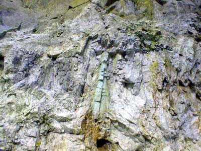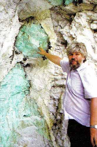 Giant beryl crystal in the Assunção pegmatite, reaching about 4 m length