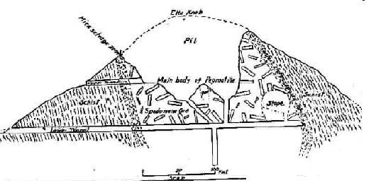 Cross section of the Etta Mine in 1929 clearly showing the large