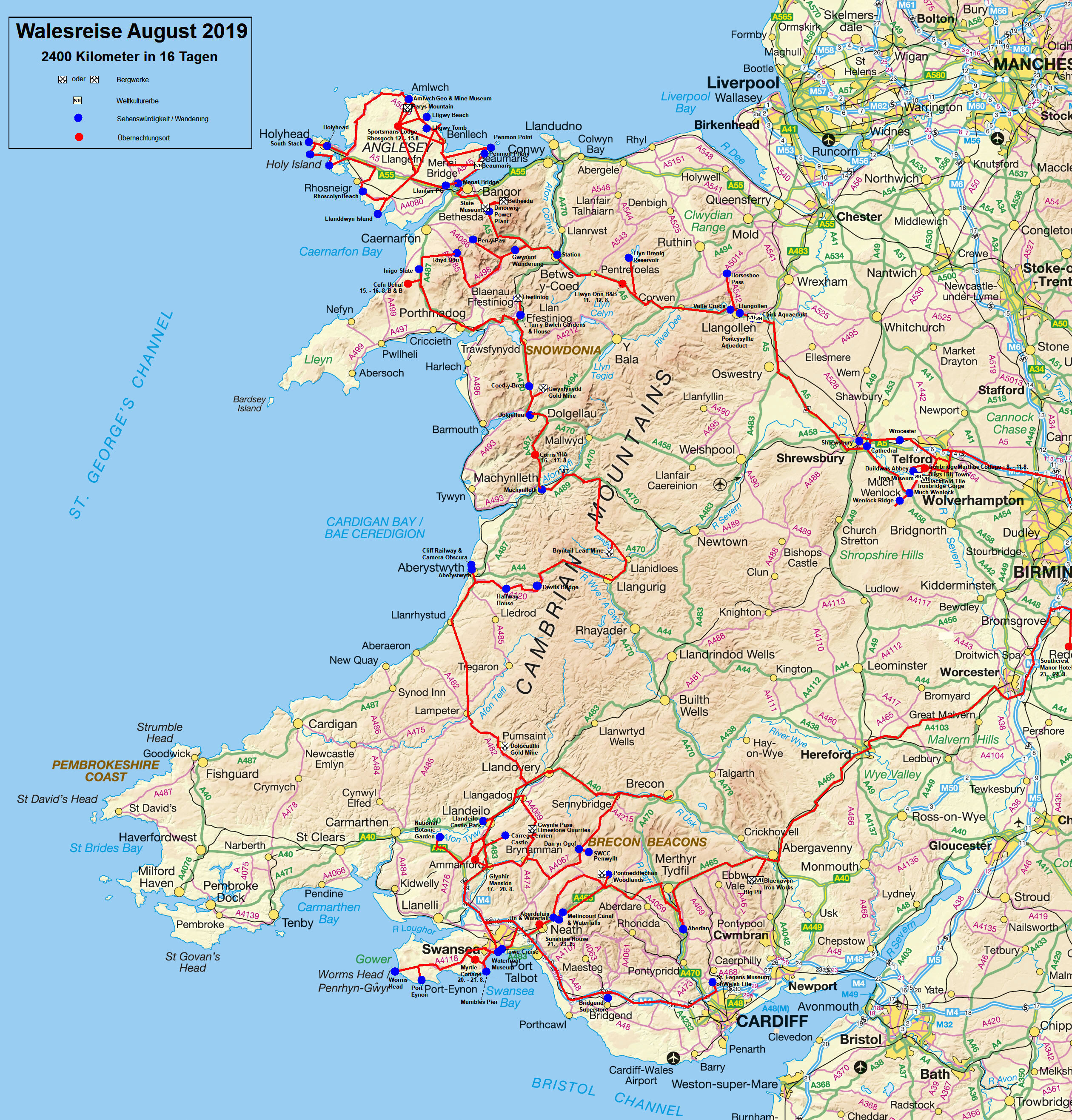 Wales ist eine sehr abwechslungsreiche und landschaftlich schöne Region, wie die obigen Bilder vielleicht zeigen. Wer sich für unsere genaue Reiseroute interessiert, findet diese hier. Für weitere Informationen stehe ich gerne zur Verfügung.